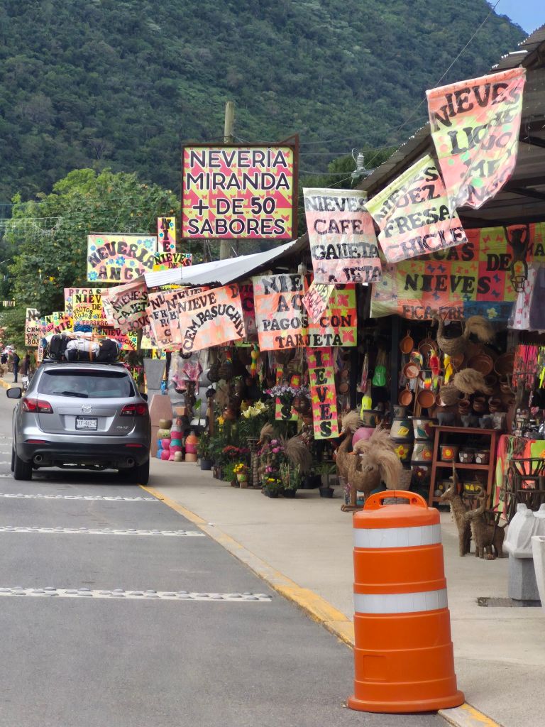 Coming back, I drove thru Snowconelandia (my name, not theirs), a kilometer of 50+ shops side by side on both sides of the road selling the exact same thing with virtually identical signage. I know it gets hot here (often repeated legend 127 degree historical high), but that has to be the greatest marketing challenge of all time… “No, stop at MY thatched roof hut with rainbow sign for the same frozen coconut milk.” I wasn’t particularly hungry, but when in Snowconelandia. It tasted like frozen coconut milk.