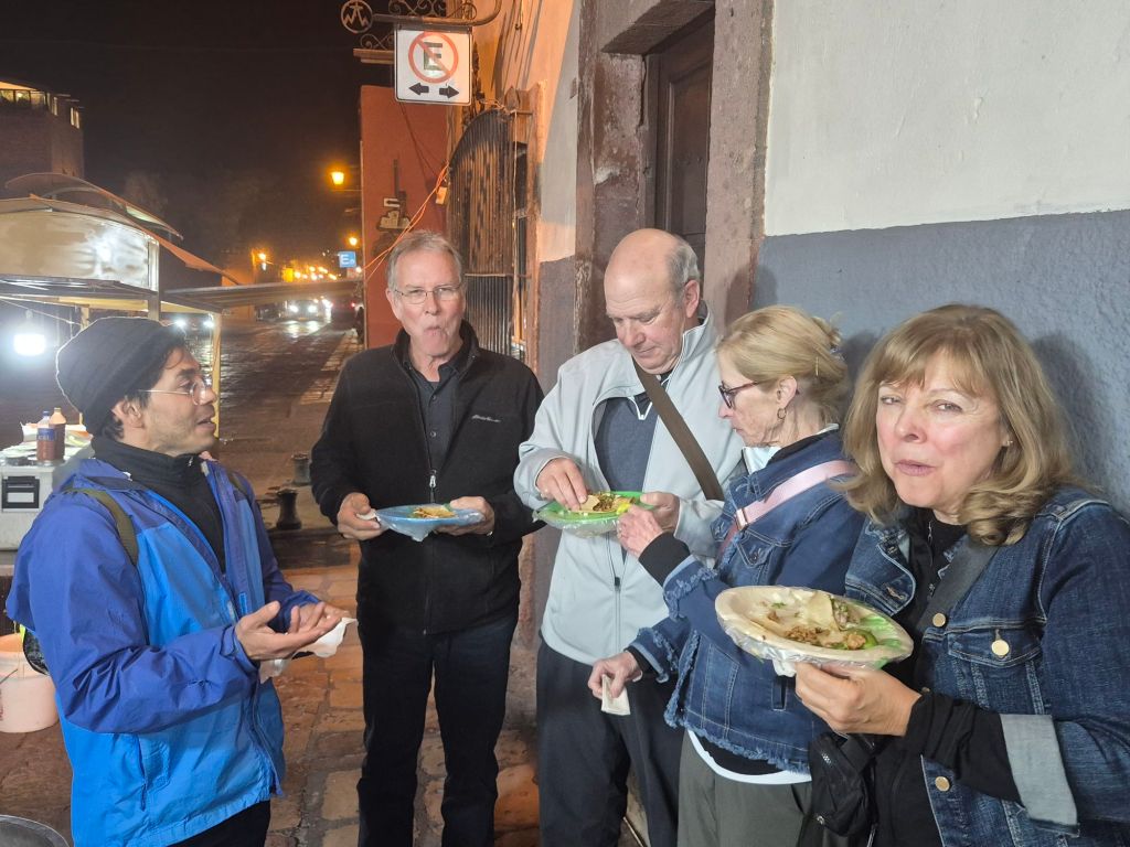 The next few stops were fine, nothing special. The food was standard fish tacos, tostadas, etc but at least the drinks were drinkable. The final stop was for barbacoa street tacos, fantastic. Overall, it was a great night. The guide was a philosophy major who attended Georgia State, and he was extremely knowledgeable about a wide array of topics from ancient commerce to current world affairs. And my companions were a blast, storytelling, joking and laughing for hours like we had known each other for years. Thanks Herb, Peggy, Steve & Sara!